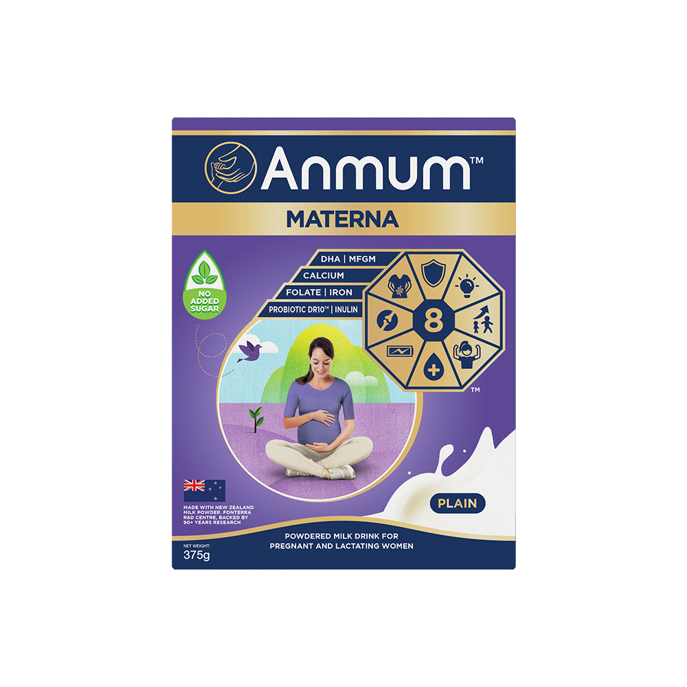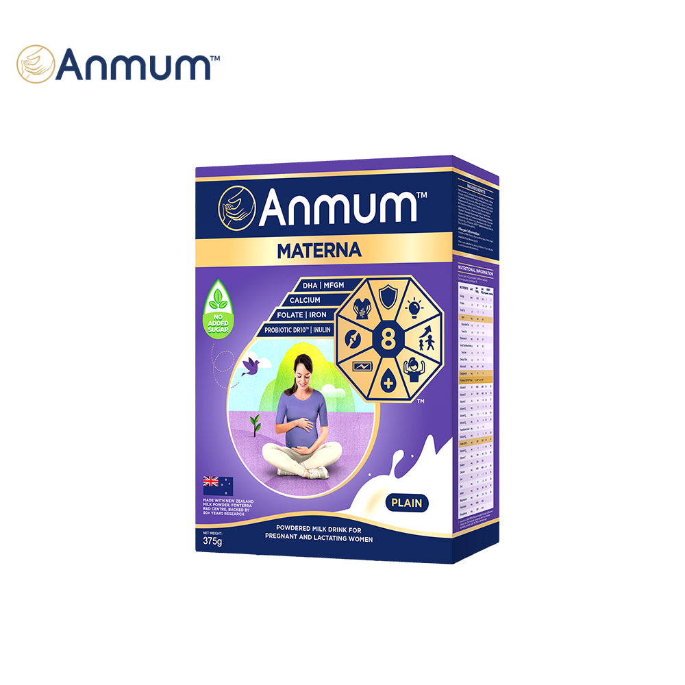 • Being low fat, Anmum Materna Plain is one of the best healthy drinks for pregnant women. As a matter of fact, Anmum milk powder is the only milk powder for pregnant ladies that has the probiotic DR10. DR10 combined with the prebiotic Inulin provides stronger immunity and healthy digestion.