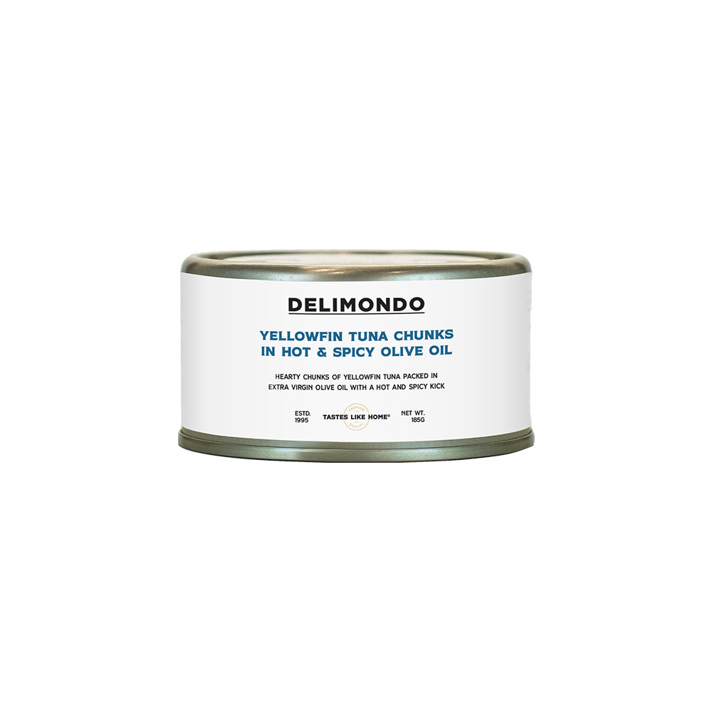 Delimondo Yellow Fin Tuna Chunks in Hot & Spicy Olive Oil 185g